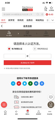 下载新罗免税店APP,点击右下角“我的新罗”,输入手机号完成注册,享受线上购物优惠;也可访问新罗网上免税店官网,使用邮箱或第三方账号注册,成为银卡会员后可在实体店领取实物卡,或直接凭护照享受会员折扣,并根据消费金额逐步升级会员等级。