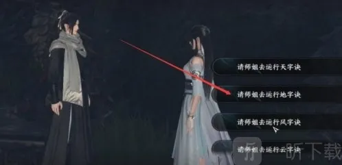 6、调查附近的石碑之后让师姐去运行口诀,选择地字诀。