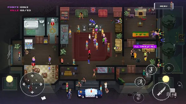 1、像素风格的策略游戏,故事发生在一个正在举办疯狂派对的夜晚。