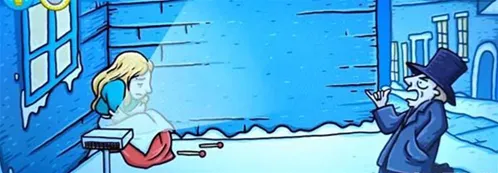 点击左边的一块雪移动到右边的位置,这样下面就会出现一个投影仪从而过关;