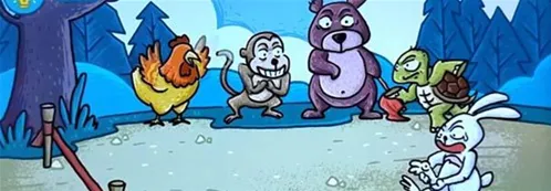 将左边鸡的眼睛拖动到兔子脚上,然后兔子脚上就会长出一个鸡眼,这个时候乌龟就可以赢得比赛;