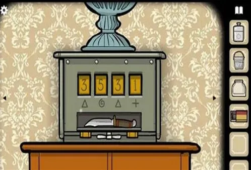 在两扇窗子那儿的密码盒子里输入密码3531,得到刀子。