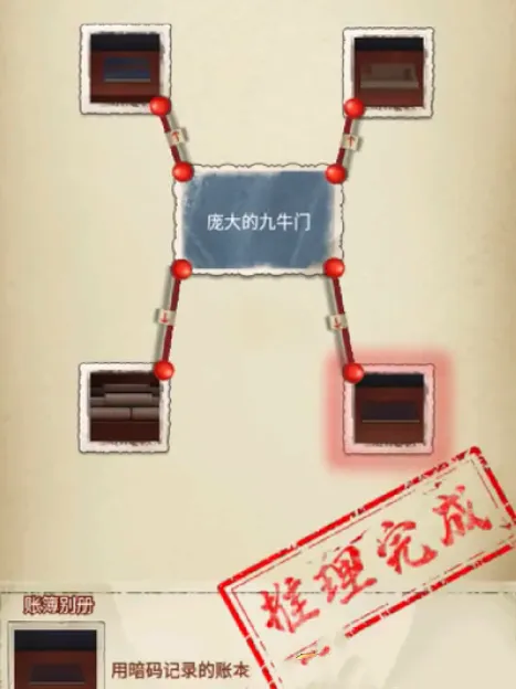 6、推理庞大的九牛门,如图放置线索。最后按下确定按钮。