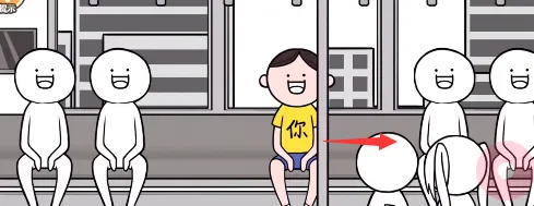 2、控制人物向着座位的方向一直走,就能抓到地铁上面的扶手。