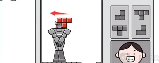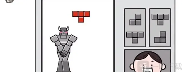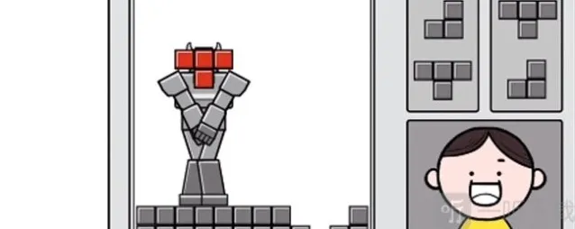 4、之后机器人就会双手张开,俄罗斯方块变成内裤,套在机器人身上。
