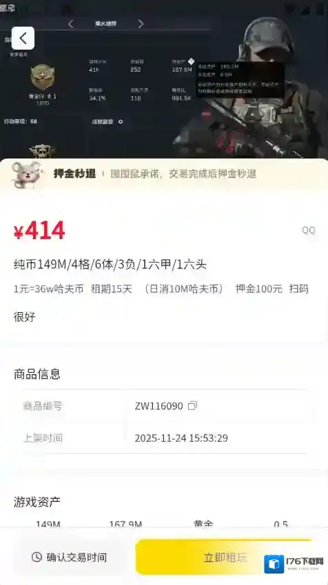 4、选择自己喜欢的账号进入详情页,点击“立即租玩”即可。