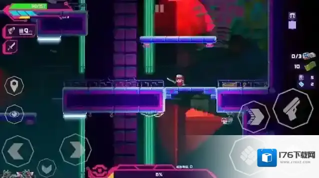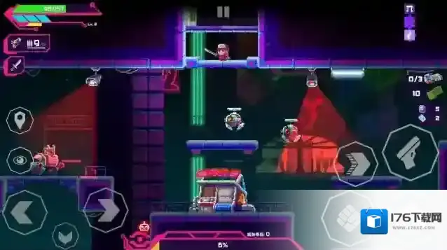 2、正式开始后左边控制角色的移动和互动,右边是攻击、跳跃、冲刺和射击按键。