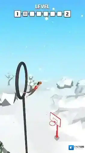 2、游戏的关卡难度逐渐增加,玩家需要通过各种道具在空中进行翻转,将篮球帅气的扣进篮筐。