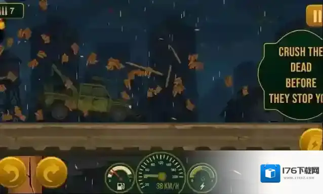 5、操控你的车辆不断前进直到油量耗尽,当油量耗尽后就会结束,结束后会根据你行进的距离来给予不同的金币。