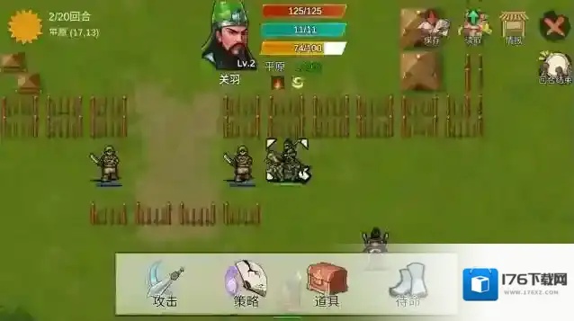 5、开始战斗后玩家可以点击自己的武将来进行移动、攻击或者使用道具。
