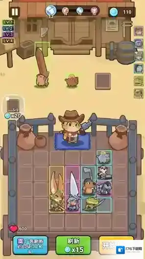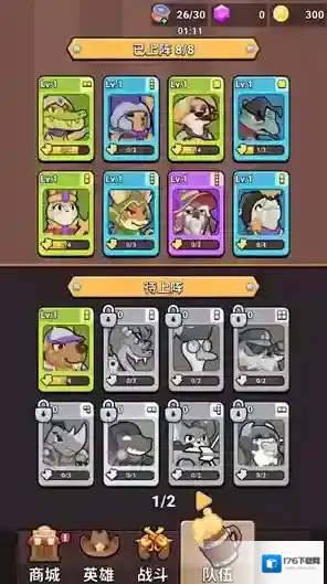 2、进入关卡后玩家可以选择初始英雄进行战斗,相同品质的英雄可以合并来提升等级。