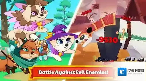 2、超过100位不同的狗狗英雄可供收集,选择丰富多样。让你的英雄们参与战斗,并不断进化,解锁新的技能、特性和服装,让每位英雄都独具特色。