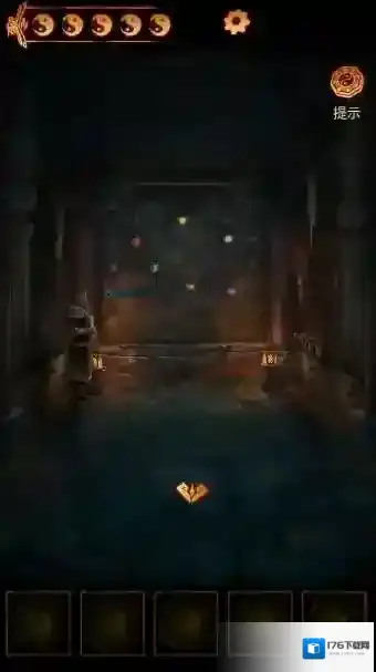 1、进入右边的墓室,书柜上获得一只石狮子,把石狮子放在主通道的空缺处,根据墙上的石狮子改变四个狮子朝向,一个密码箱降下来。
