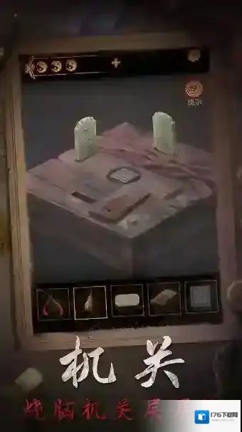 5、根据日记加载的顺序调整墓室左边柜子上的物品,箱子打开,获得古旧钥匙。