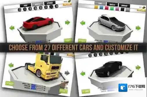 1、开始正式比赛前,大家可以自由的挑选喜欢的车辆,并且还能更换喷漆、轮毂等设置。