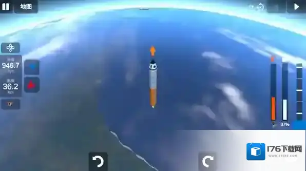 6、正式开始后点击右下角的按钮可以点燃不同的推进器,右边的蓝色按钮是调整推进器的功率大小。