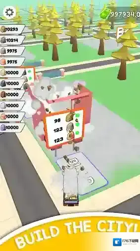 2、玩家可以驾驶载着石头的车辆在城市中穿行,在建造整个城市的同时建造建筑物并开辟新的区域。
