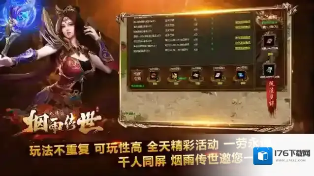 烟雨传世,176复古三职业版本,三端互通打造,在传统复古金币底版基础上新增九流派玩法,进一步提升游戏趣味性,让每一位玩家享受更激情的体验!无月卡点卡限制,所有玩家零门槛登录,无元神,神武顶级的底版无需赘述,装备材料100%靠打,金币书页刚需保值!新增怪物精魄召唤BOSS,爆率全看脸,收获更公正!