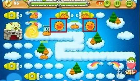 2、打掉太阳旁边的道具,可获得2个炸弹星和2只玩具飞机,这样前期基本就没有太大压力了。