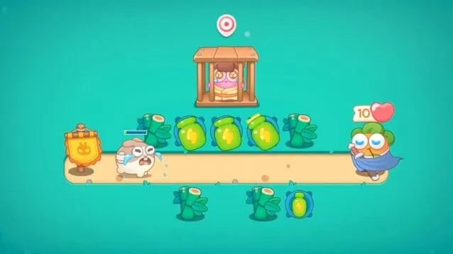 6、众多瓶子炮攻击怪物堡垒的速度很快,即便有怪物跑出去,也逃不过其他炮塔的轰炸,轻松过关。