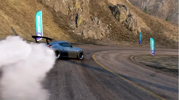 在做完这项任务之后我们可以直接传送回风火轮嘉年华前哨站附近的平台上,在这里可以通过完成一些技巧来获取赞赏奖励。“兴奋超级加倍”挑战任务要求我们在前哨站附近完成一次终极烧胎技术,然后鸣笛三次进行庆祝,限定时间需要再三十秒钟之内做完所有操作。“按喇叭”相信所有玩家们都知道如何做,如果你用的是键盘的话那么直接按下G键就能够触发鸣笛功能,对于手柄玩家也只需要向下按动右侧的摇杆也能够做到。而对于终极烧胎技术可能有人会不了解,具体要求是让我们操控赛车通过让轮胎与地面摩擦产生大量白烟。对于四驱赛车来说其实原地烧胎是比较难的,你可以尽可能的先打方向再不断轰油门,将车辆的抓地力控制在一定范围内就能够在原地转圈烧胎了。用四驱赛车做这个任务其实是有一些难度的,而且并不适合采用自动换挡进行这项操作,所以还是建议实现更换一辆马力足够大的后驱赛车来完成该任务。