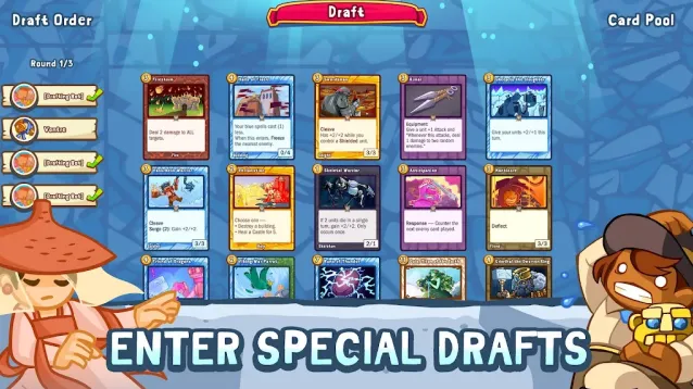 4、参与特殊选秀模式,从共享卡池中轮流挑选卡牌。合理选择强力卡牌,构建更具优势的卡组,提升竞技体验。