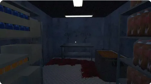 整体场景偏暗,细节制作精良,搭配音效与追击机制,带来强烈的压迫感与沉浸式恐怖体验。