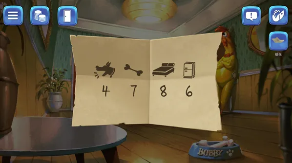 4、在场景中收集到的物品会被放在右上角的背包里,点击右上角的按钮可以打开背包查看物品
