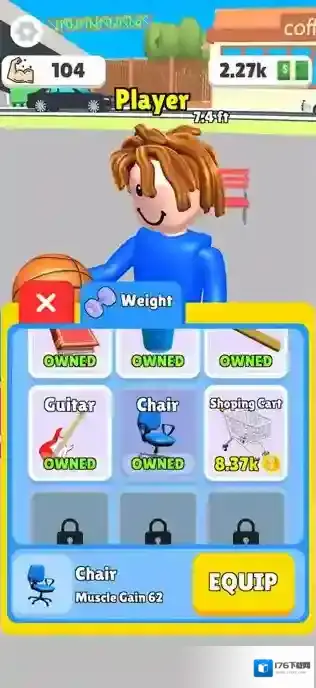 6、最后只需要不断的收集多量的金币来购买更多道具帮助角色生长肌肉即可。