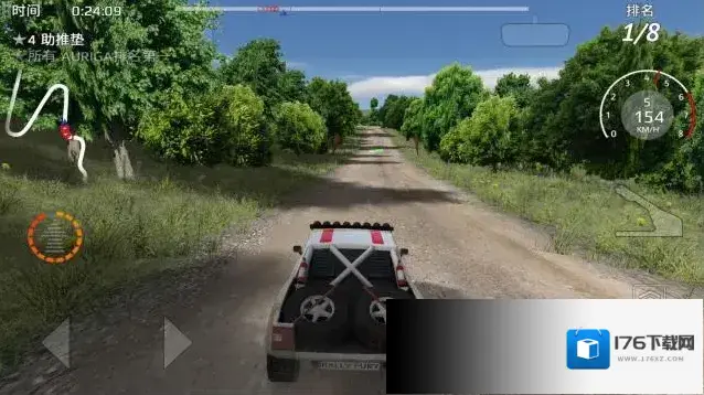 4、进入关卡后左边控制车辆的转向,右边是油门、刹车和手刹按钮,左边的圆圈按钮是氮气加速。