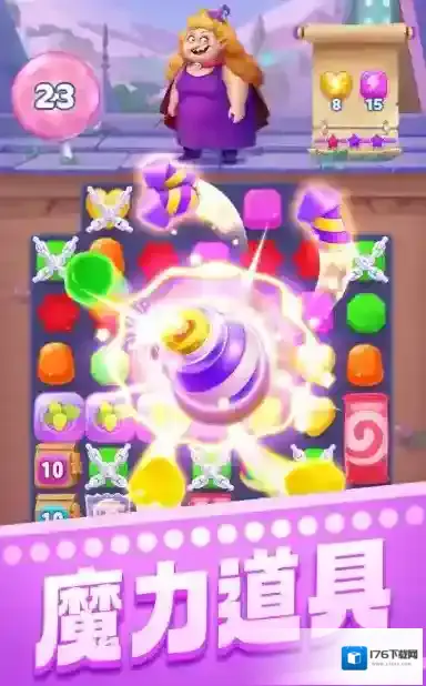 3、通过移动相邻图案,让三个相同图案连接在一起即可消除,成功消除目标图案时将会对女巫造成伤害。