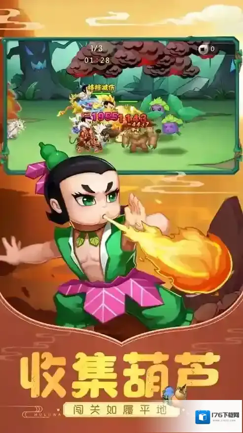 2、不仅仅是七种葫芦娃可供收集,还有葫芦小金刚等等各种角色可以招募,轻松组成战队!