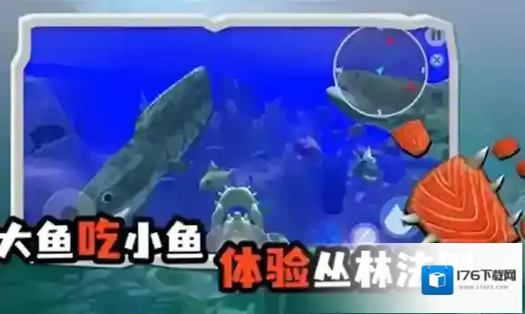 3、成长与进化:通过猎杀其他小鱼获取食物,玩家可以促进自己的鱼类角色成长和进化,这种成长机制增加了游戏的可玩性和挑战性。