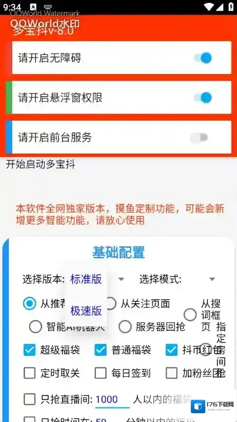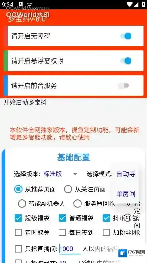 1、智能识别直播间福袋/红包弹窗,自动计算倒计时并精准点击。
