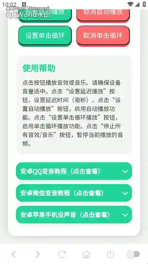 1、点击按钮播放音效或音乐。请确保设备音量适中。