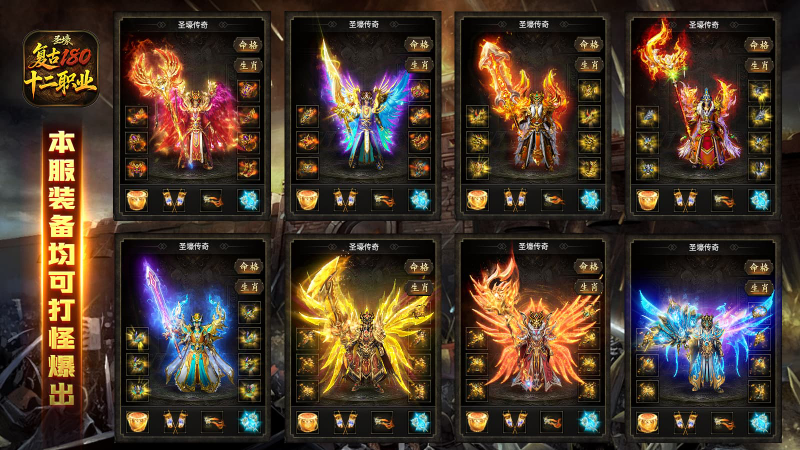 圣壕复古多职业,经典180复古三职业特色版本,在经典的战、法、道三大职业基础上,为每一个职业细分了四个流派,玩法丰富多样,体验起来各有千秋!游戏内所有的装备、道具都可以通过打怪获取,前期的地图中也能够掉落各种等级装备!每日还有各种精彩的活动不断,丰富的福利领不停,更有超多装备可以任意搭配,玩法琳琅满目!